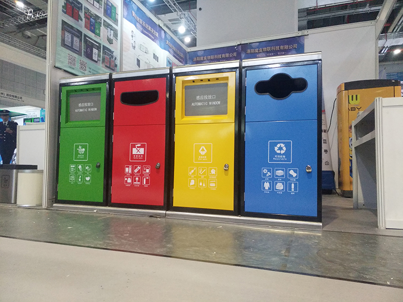 这款四分类智能垃圾桶成为了会场上一道亮丽的风景。